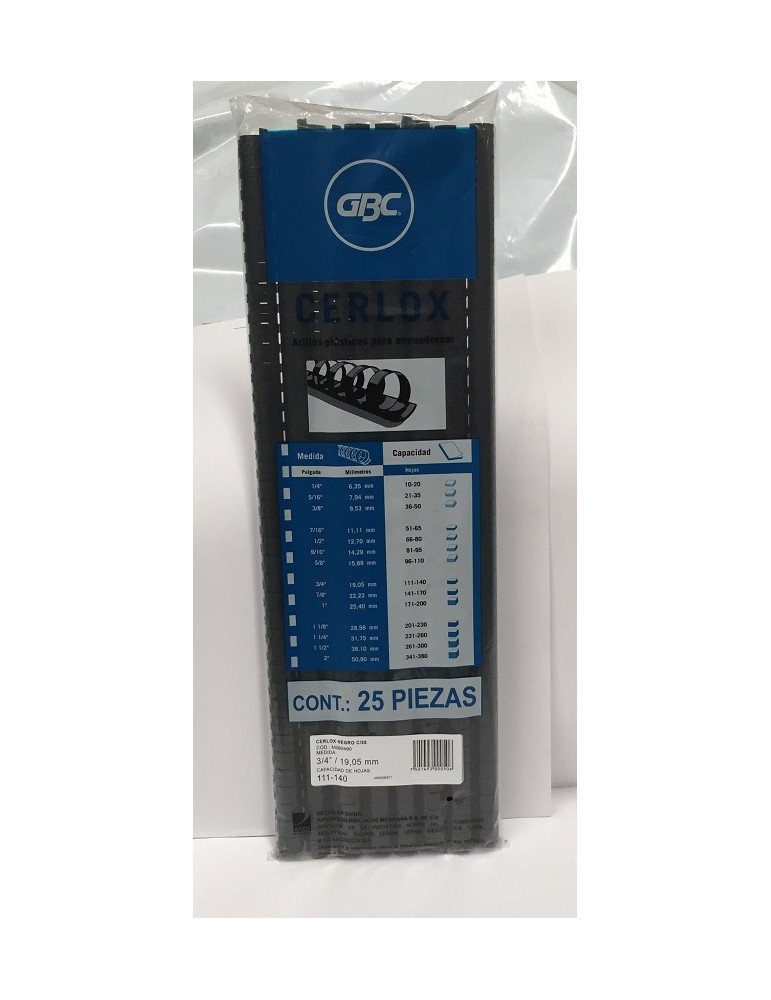 ARILLOS DE PLASTICO ACCO GBC NEGRO 3/4 C/25PZ X/10