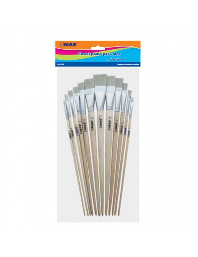 PINCEL PLANO MAE P/OLEO PELO CERDO SURTIDO C/12PZ X/72