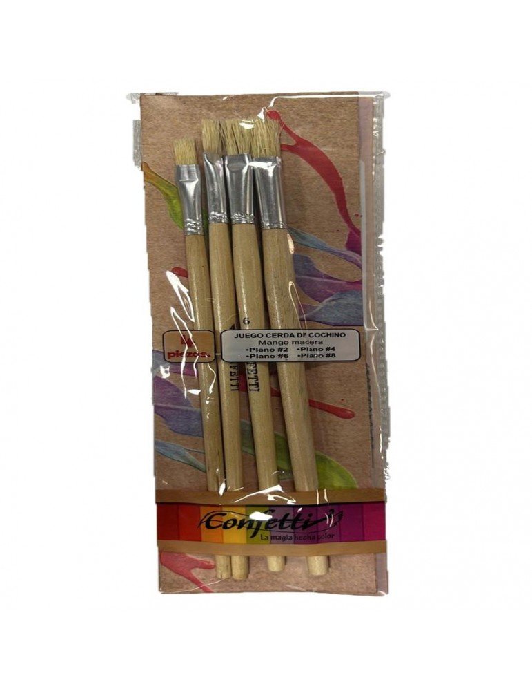 PINCEL ESCOLAR CONFETTI MADERA P/CERDA C/4PZ PIN-3 X/10