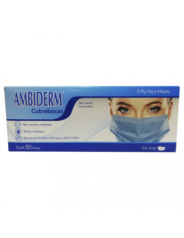CUBREBOCAS AMBIDERM AZUL 3PLIEGOS C/50PZ X/40