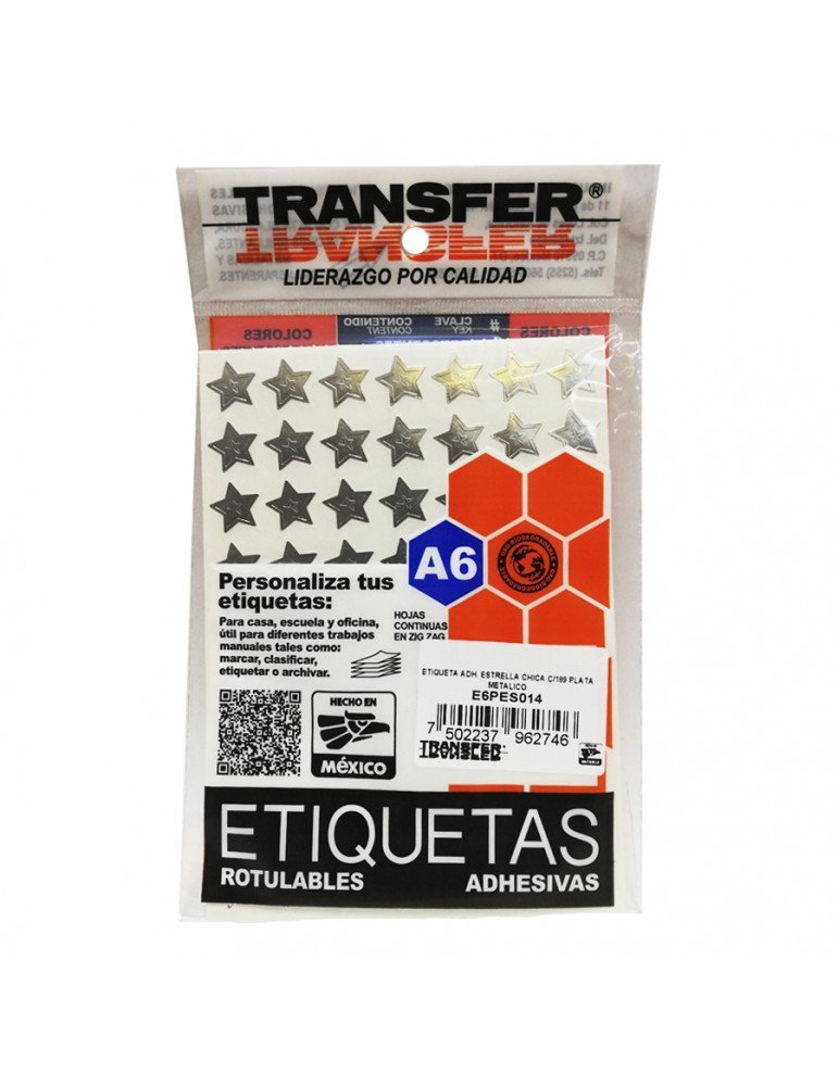 ETIQUETA ADH:TRANSFER ESTRELLA CHICA PLATA C/189PZ X/360