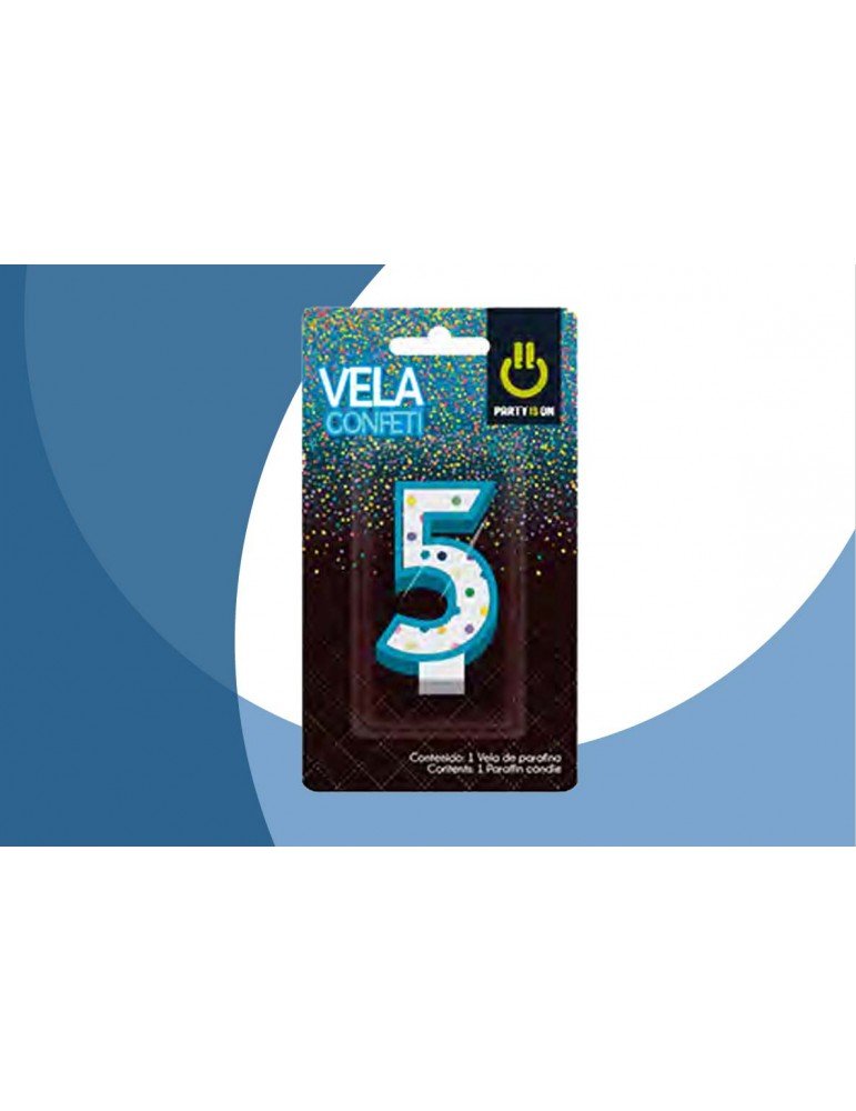 VELA NUMERICA CONFETTI AZUL 5 BLC/1PZ X/12
