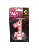 VELA NUMERICA CONFETTI ROSA 2 BLC/1PZ X/12