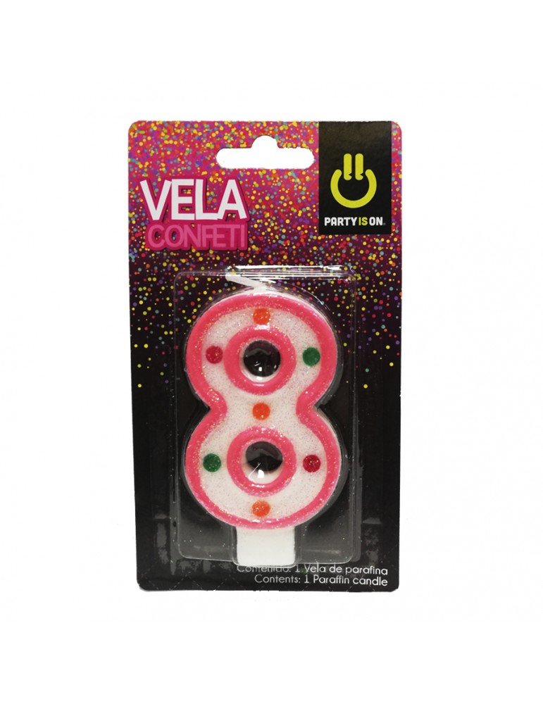 VELA NUMERICA CONFETTI ROSA #8 BLC/1PZ X/12