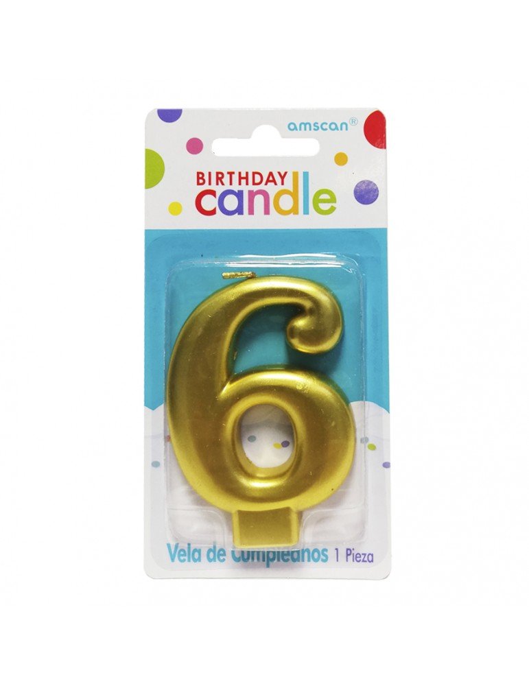 VELA NUMERICA AMSCAN MOLDEADA DORADA #6 BLC/1PZ 7186