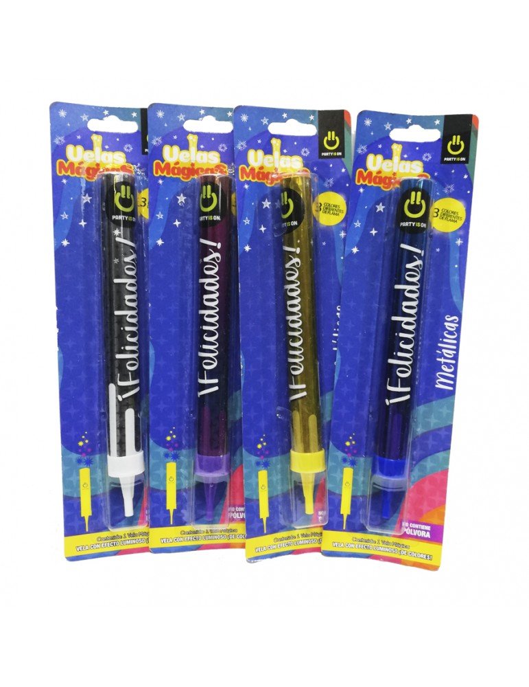 VELA MAGICA PARTY IS ON METALICA TRICOLOR 14CM BLC/1PZ X/12