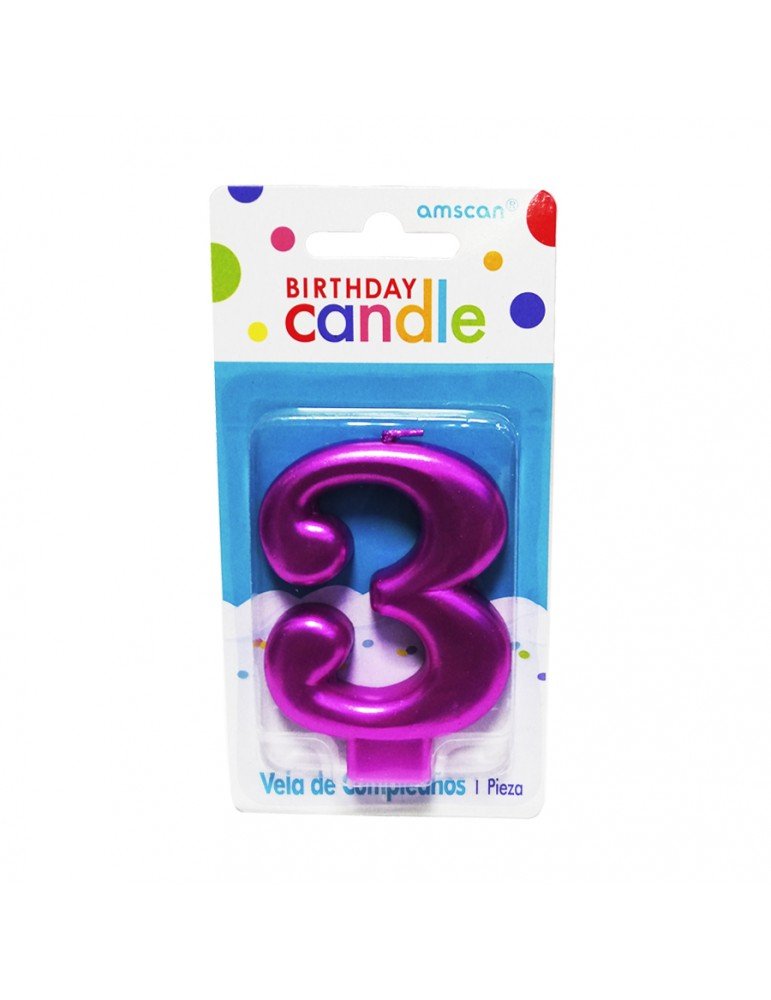 VELA NUMERICA AMSCAN MOLDEADA ROSA METALICO #3 BLC/1PZ 7186