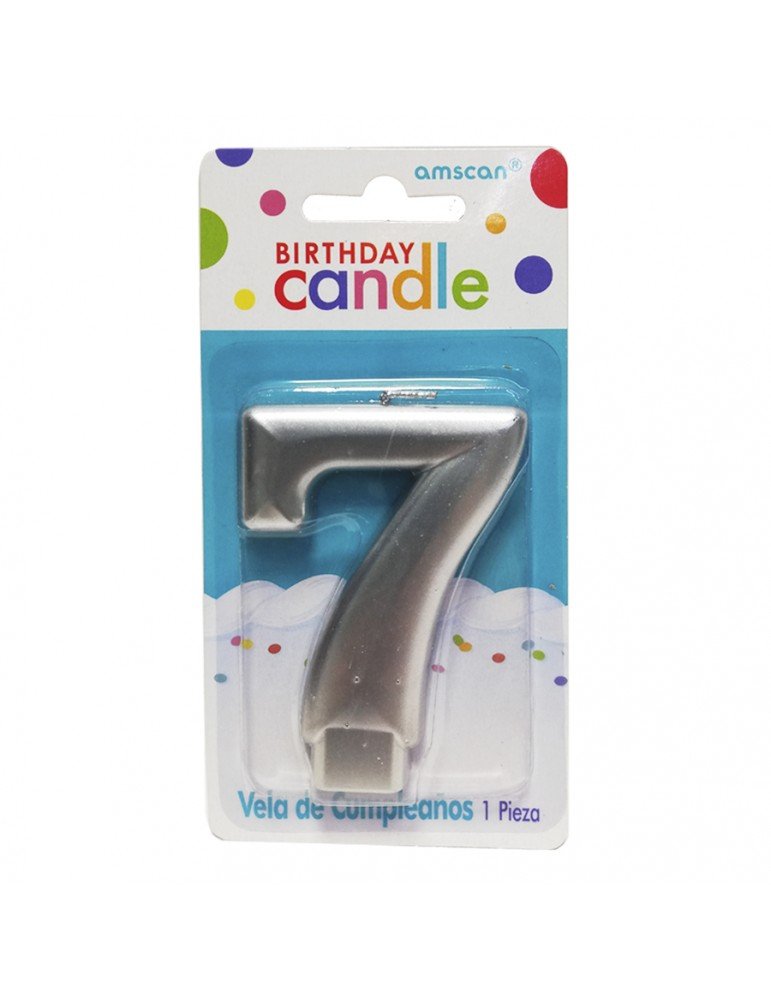 VELA NUMERICA AMSCAN MOLDEADA SILVER 7 BLC/1PZ 7186