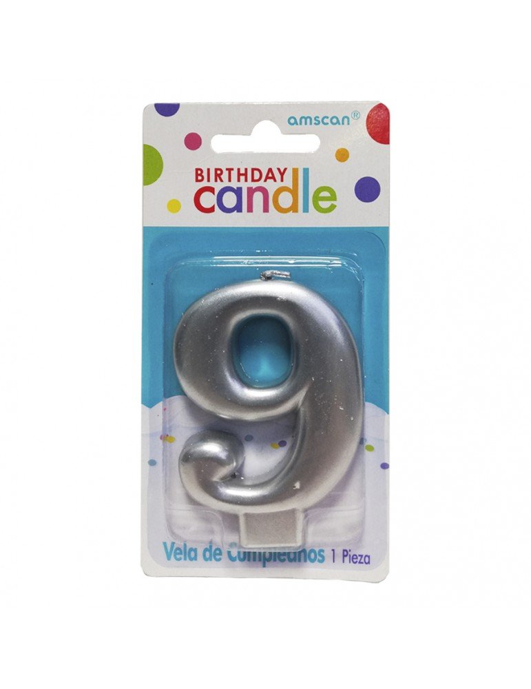 VELA NUMERICA AMSCAN MOLDEADA SILVER #9 BLC/1PZ 7186