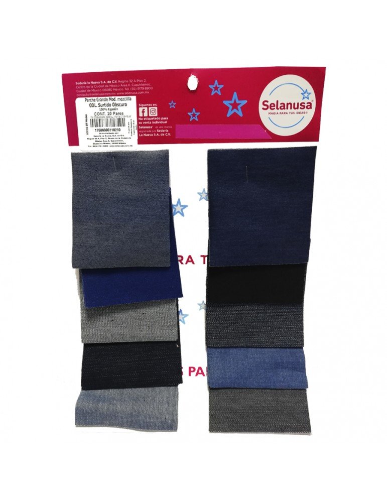 PARCHE PARA ROPA SEDERIA MEZCLILLA SURTIDO OBSCURO C/20