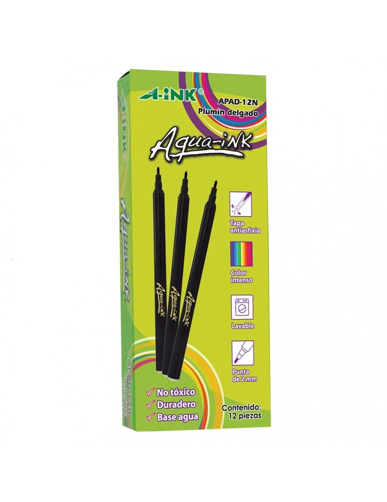 PLUMONES AQUA-INK NEGRO C/12PZ APAD-12N