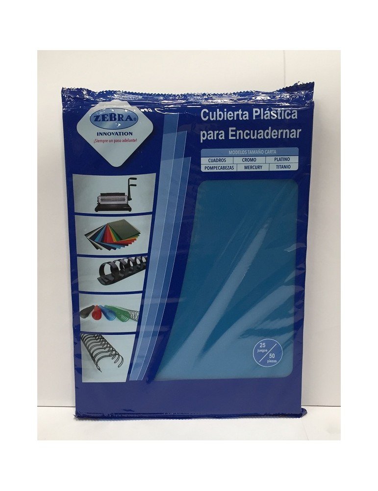 PASTA ZEBRA P/ENGARGOLAR CROMO AZUL TRANSLUCIDO C/50PZ X/20